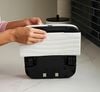 Bước 2: Đổ nước vào hộp chứa nước của robot. Có thể dùng nước lau sàn chuyên dụng hoặc nước trắng.